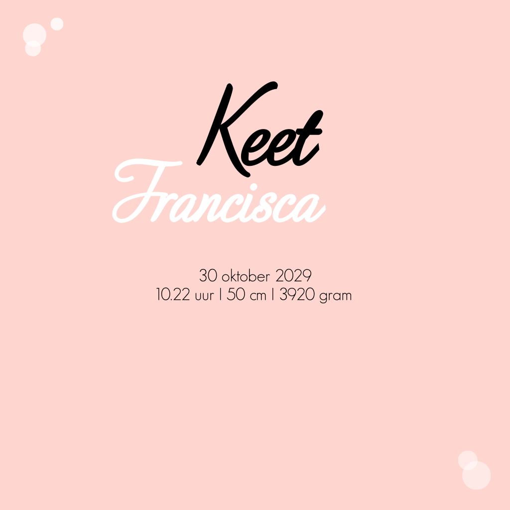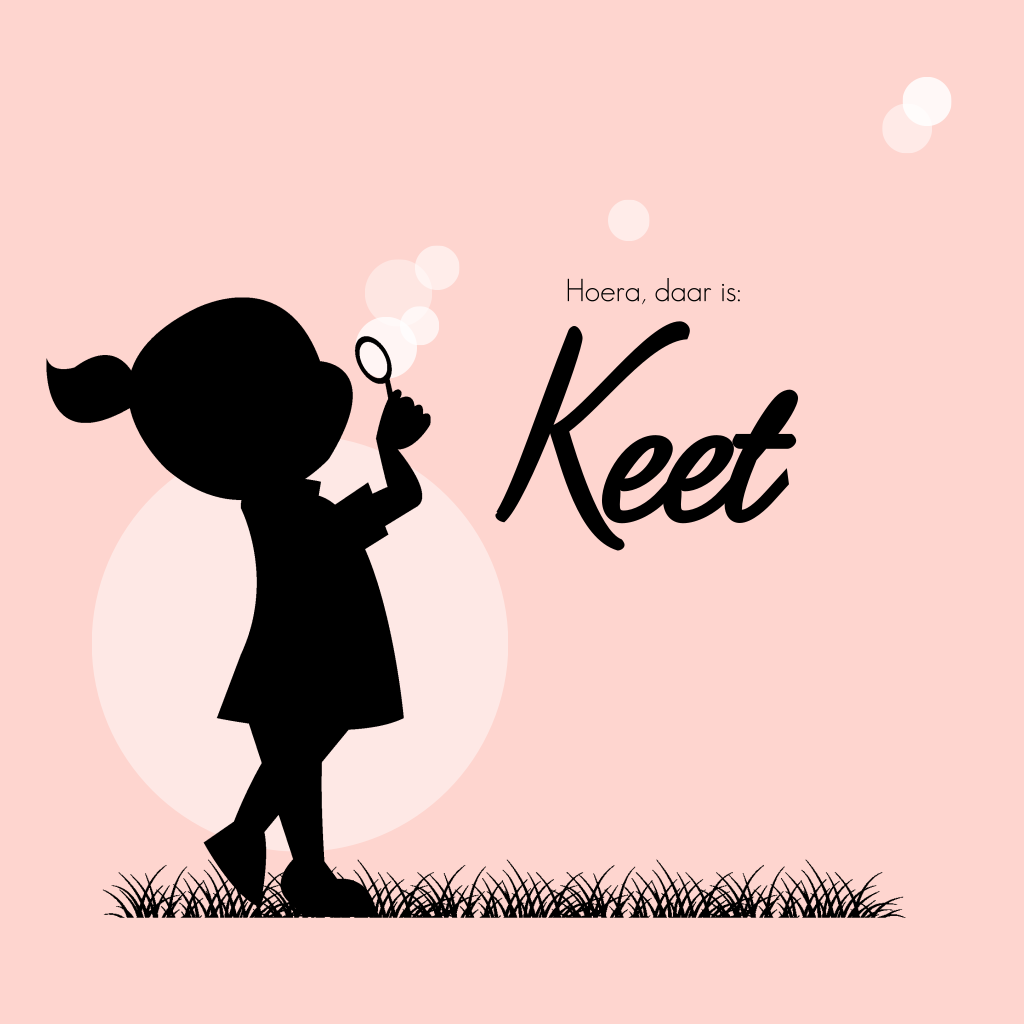 Lief en hip geboortekaartje voor een meisje. Met een silhouet van een meisje dat aan het bellenblazen is. (3370) De achtergrondkleur is naar wens aan te passen.