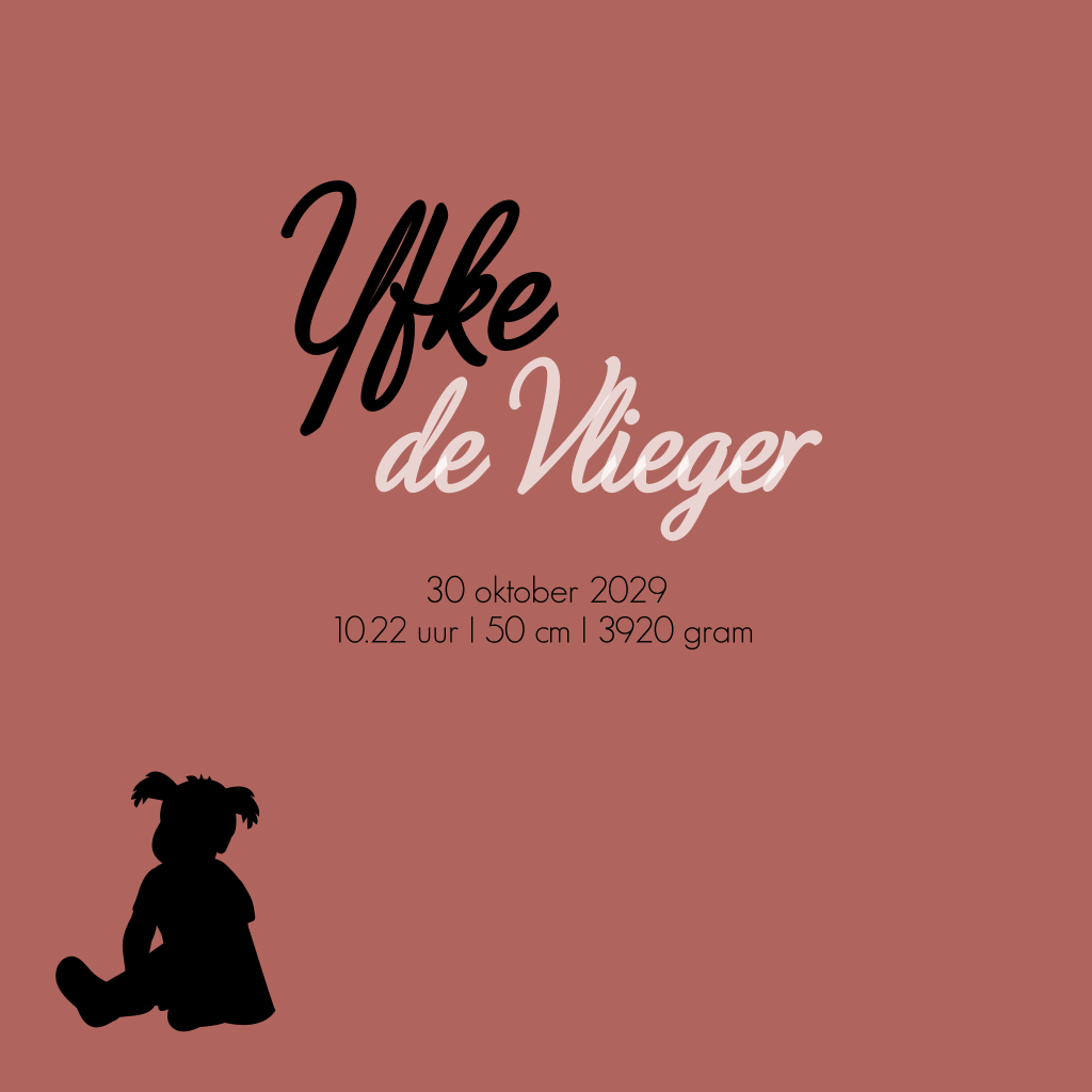 Lief geboortekaartje met een silhouet van een meisje met een hond. (3859)
