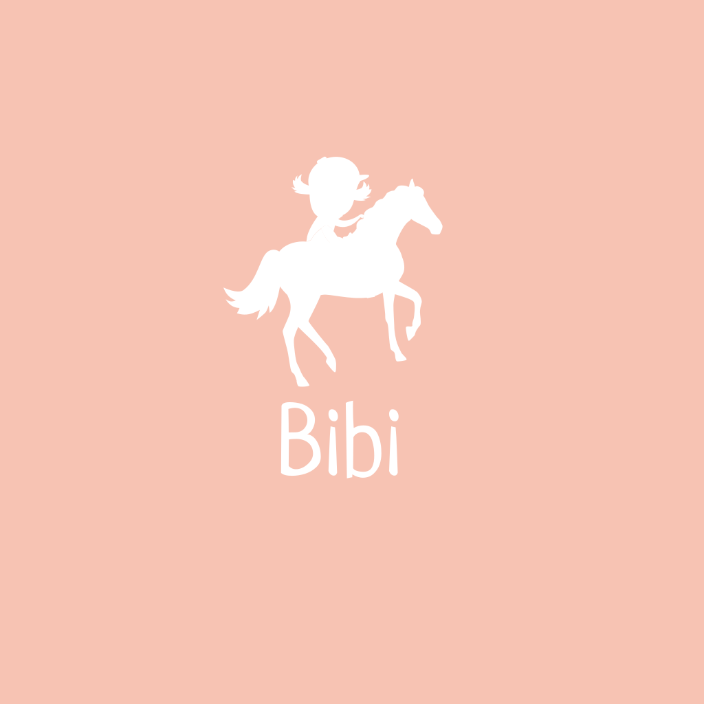 Lief geboortekaartje voor paardenliefhebbers. Met een getekend meisje dat aan het paardrijden is. (4102)