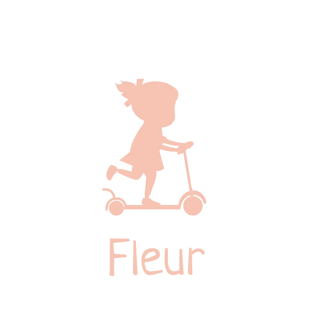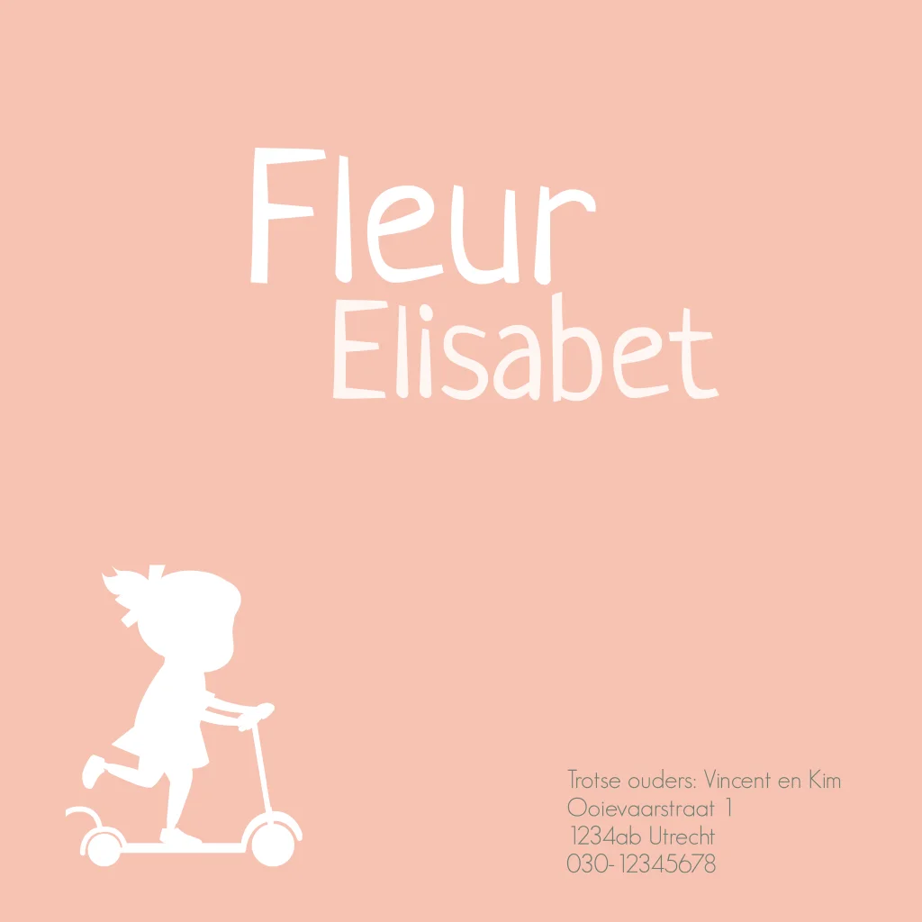 Een lief en eenvoudig geboortekaartje met een meisje op een step. (3670)