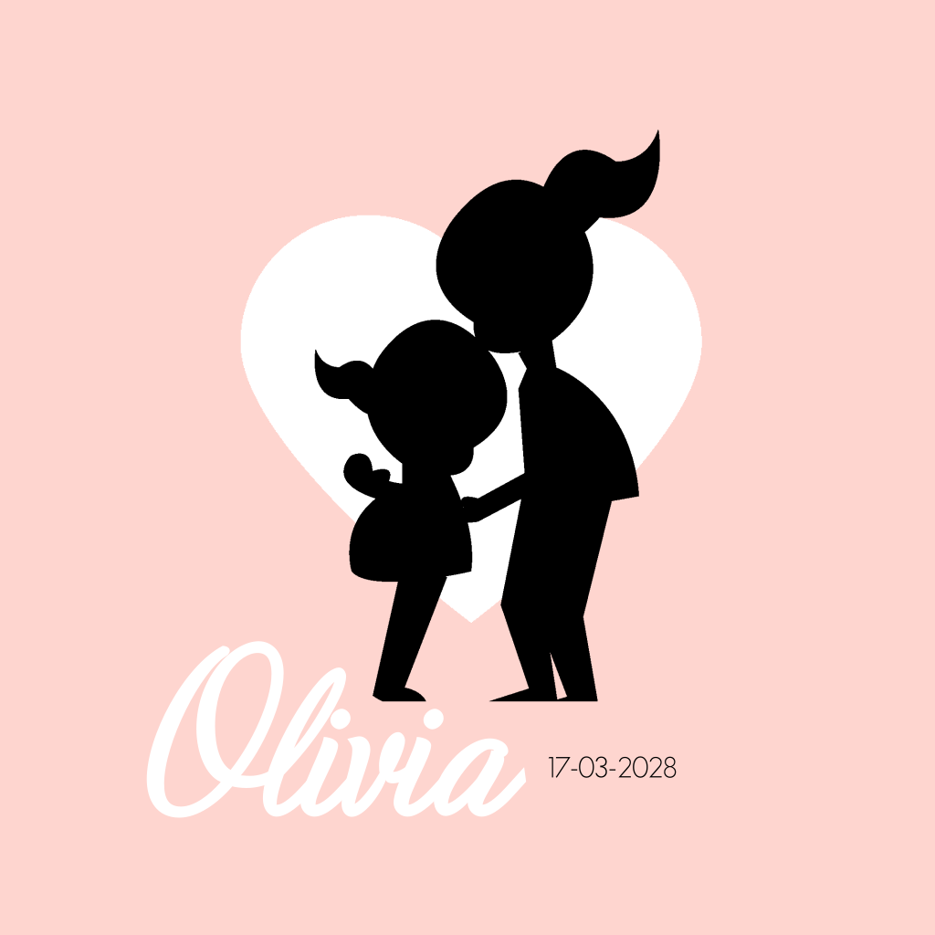 Geboortekaartje silhouet zusjes kus