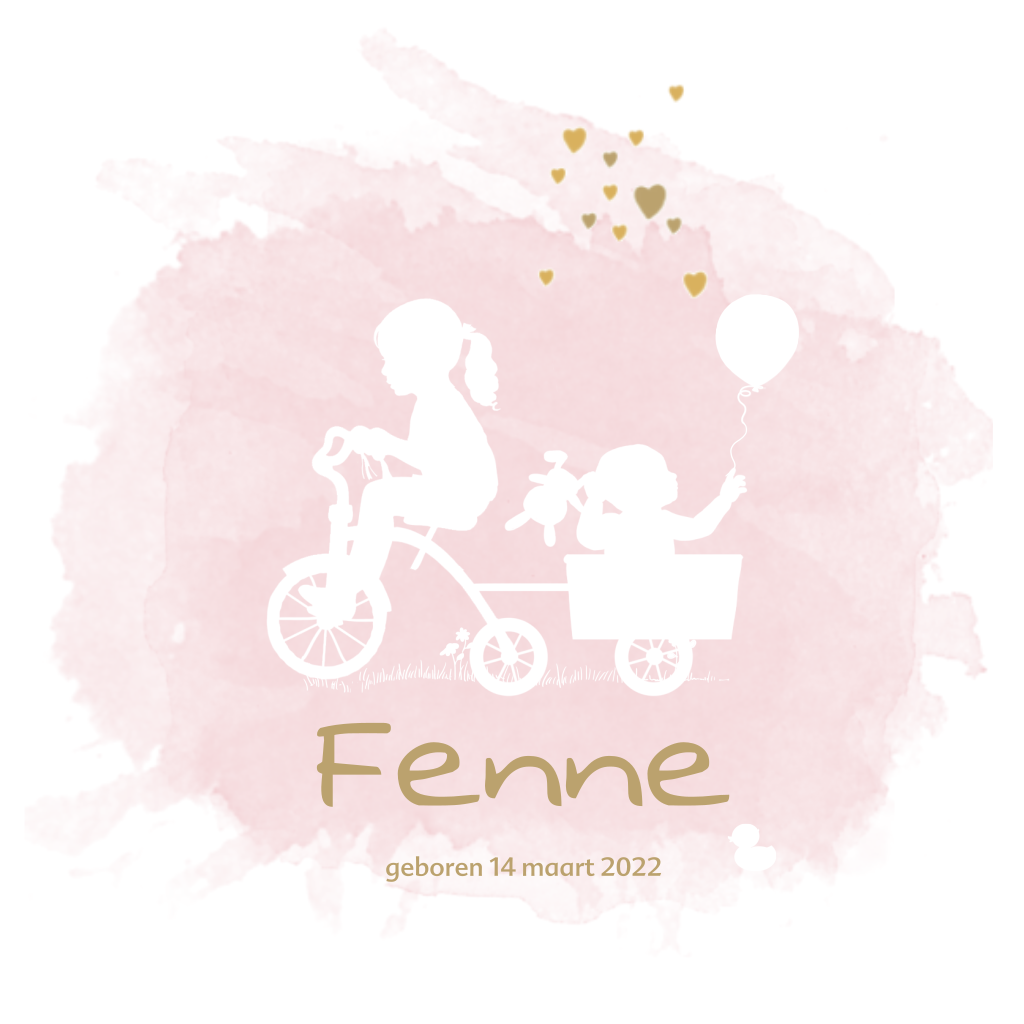 Geboortekaartje tweede kindje meisje fiets en karretje