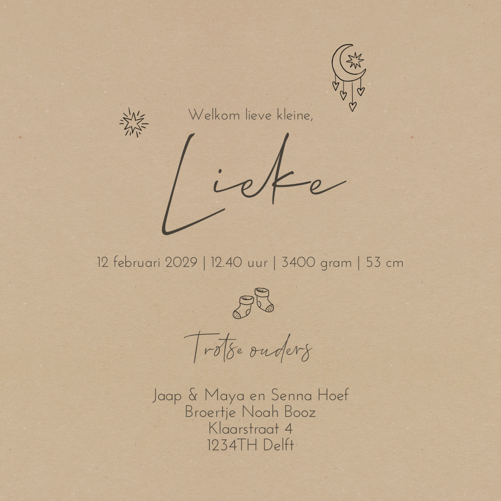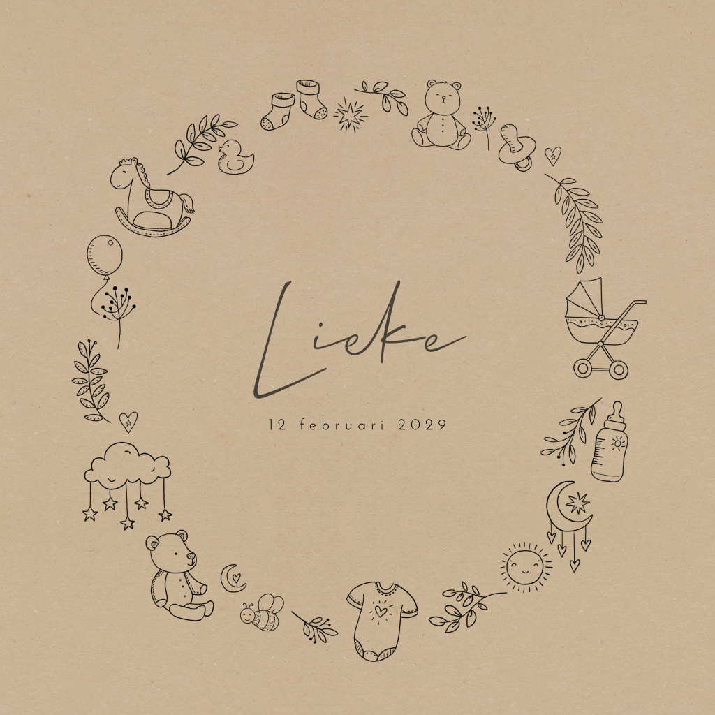 Geboortekaartje unisex lijntekening cirkel met baby elementen