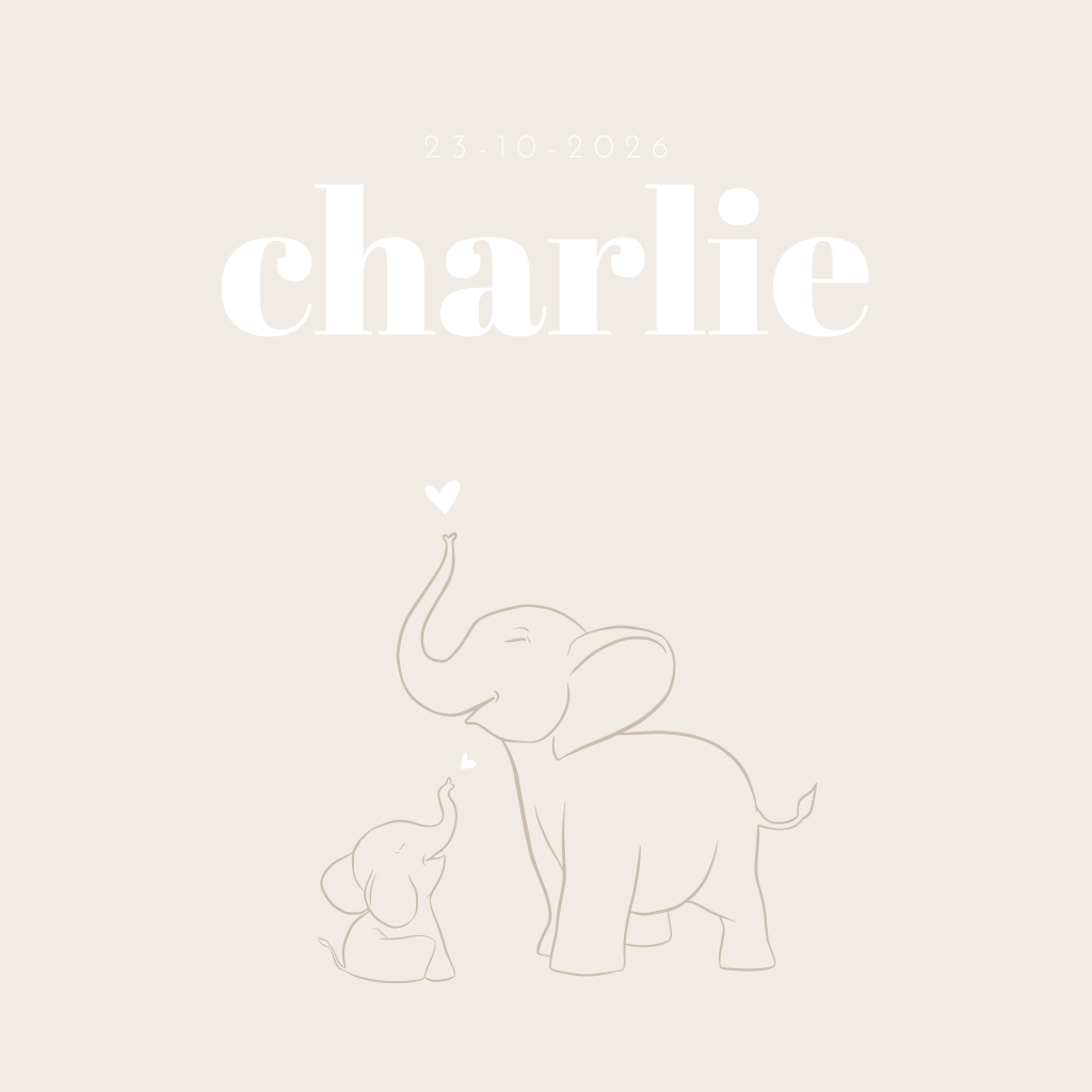 Een lief geboortekaartje voor een jongen of meisje met holografische foliedruk en olifantjes. (4712)
