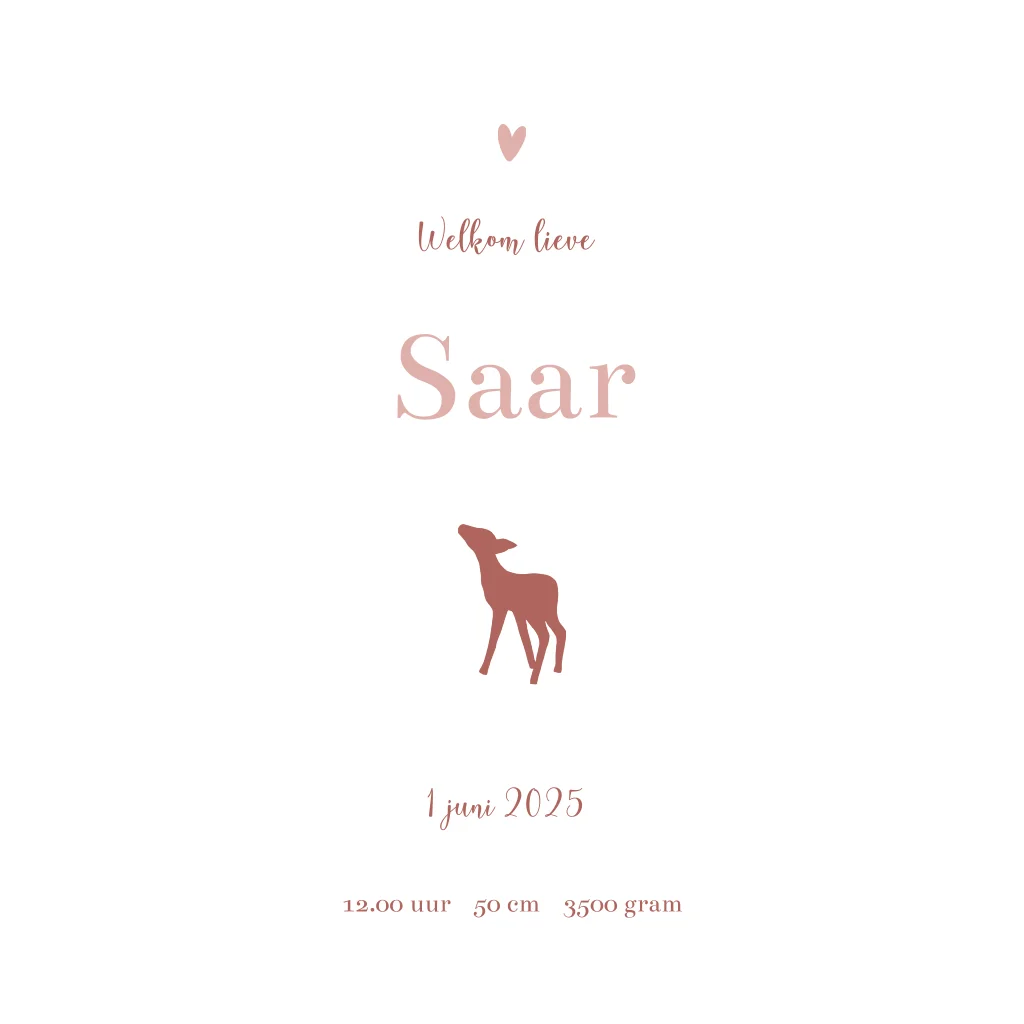 Geboortekaartje meisje silhouette hertje en maan goudfolie