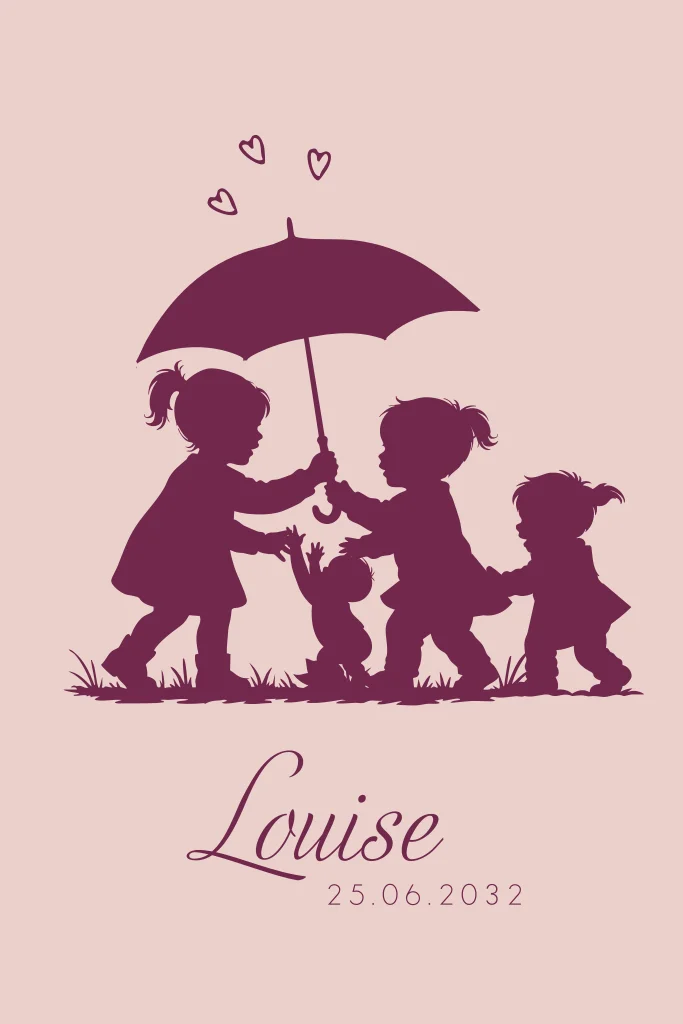 Geboortekaartje vierde kindje dochters paraplu zusjes zussen silhouet