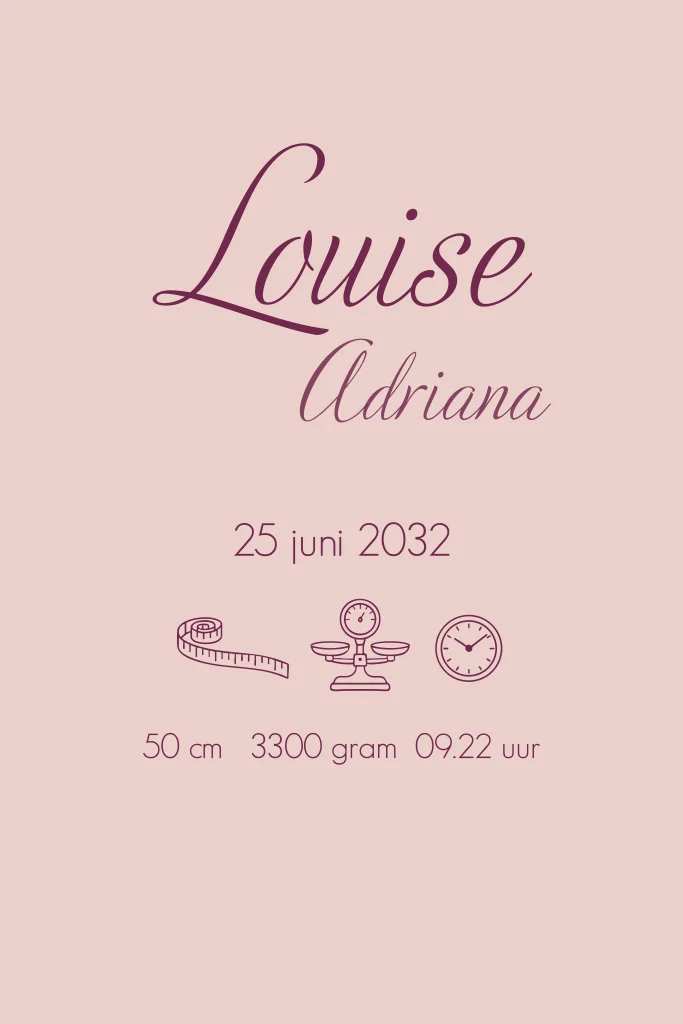 Schattig silhouet geboortekaartje in roze tinten, pas het ontwerp aan in onze online editor.