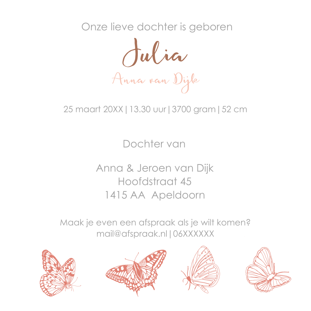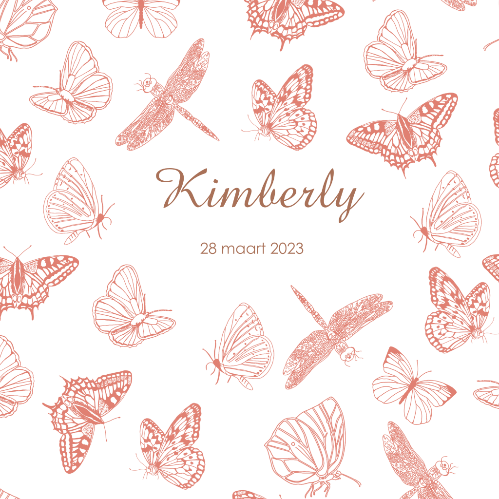 Geboortekaartje met veel vlindertjes voor een meisje. (3744)
