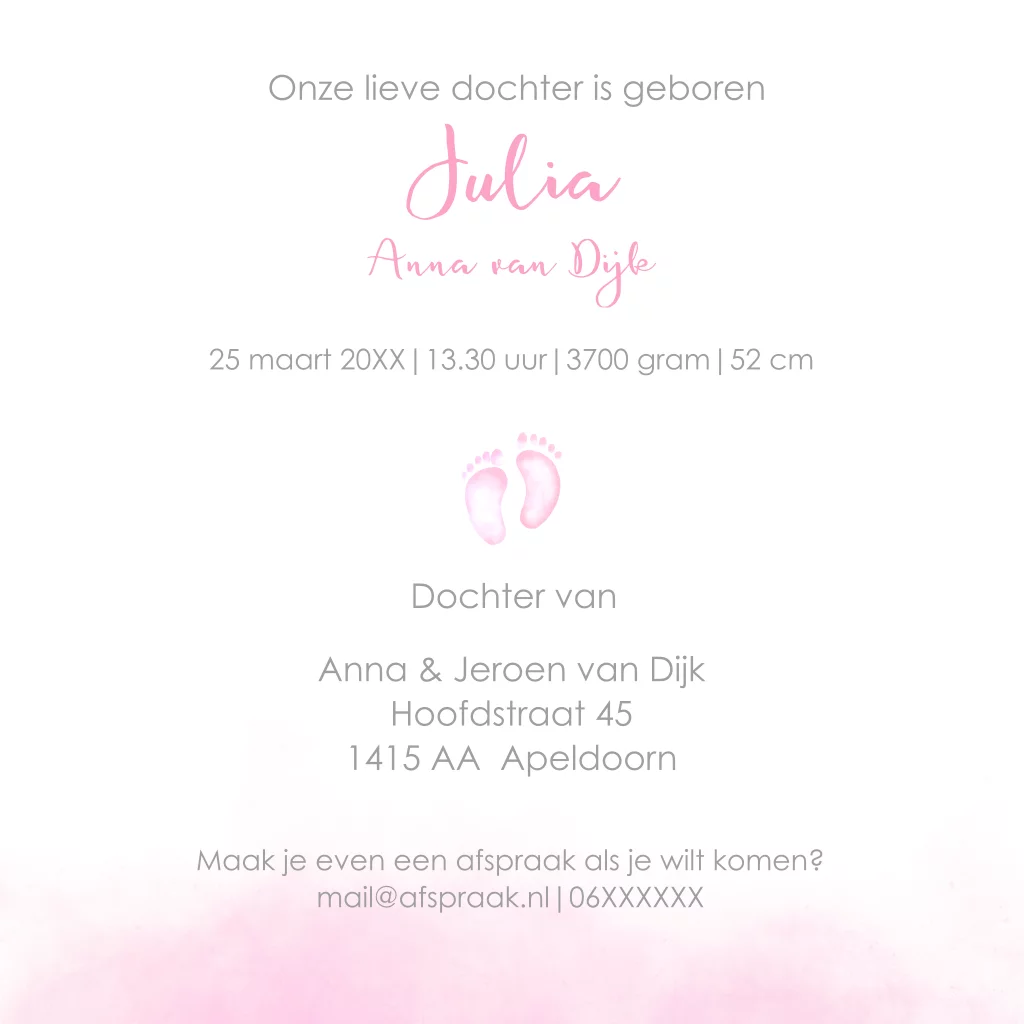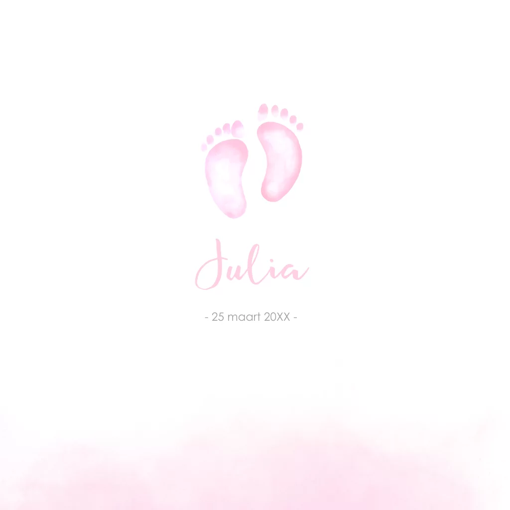 Geboortekaartje voor een meisje met kleine voetjes in aquarel. (3428)