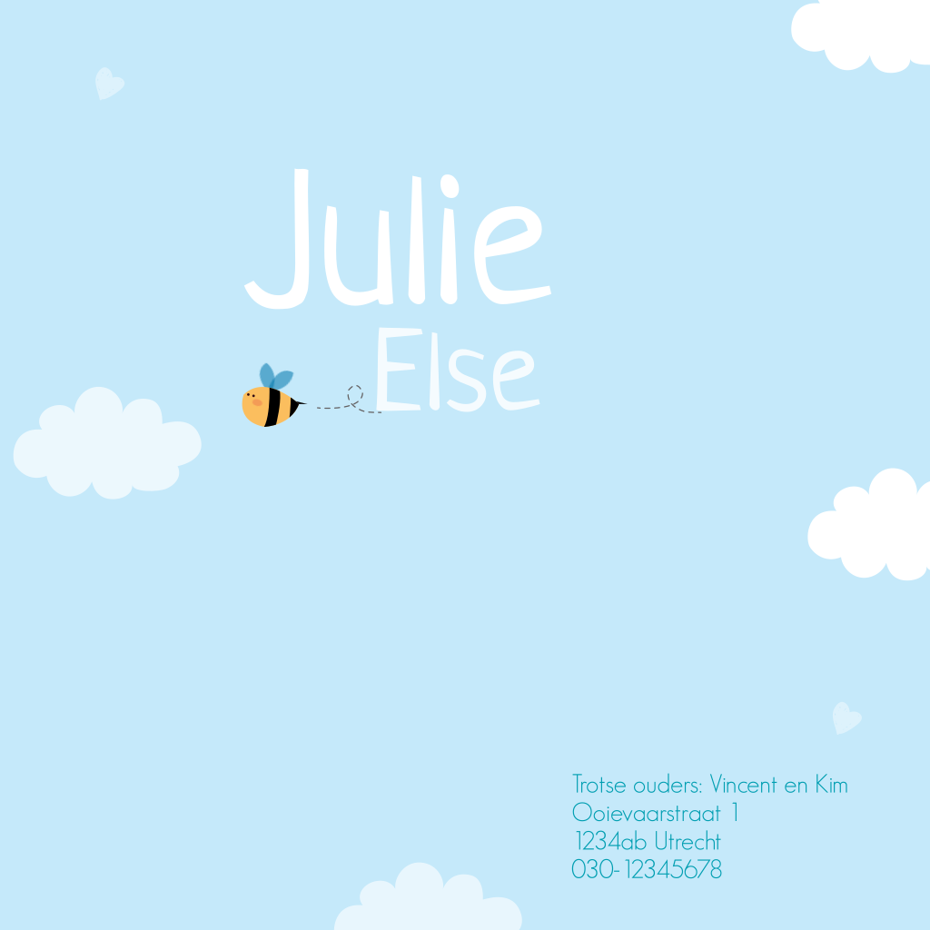 Geboortekaartje meisje bijtje en wolkjes