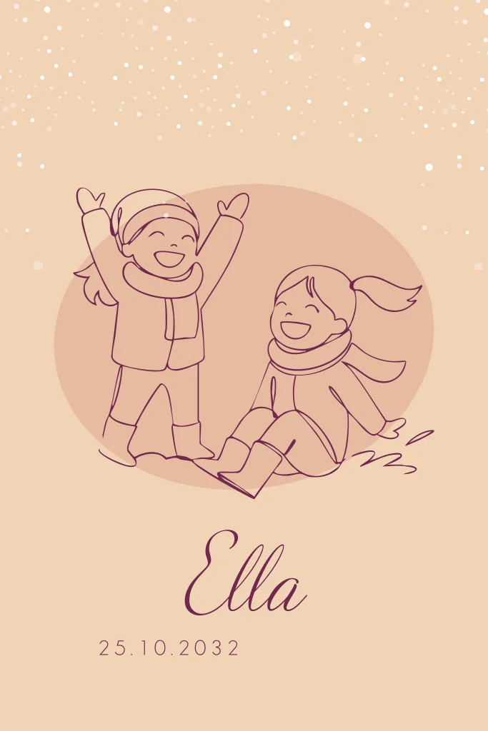 Een speels geboortekaartje voor de wintertijd. Pas het ontwerp naar wens aan in onze online editor.