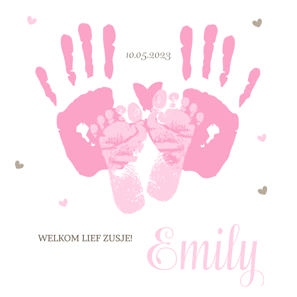 Geboortekaartje met afdruk van handen en voeten