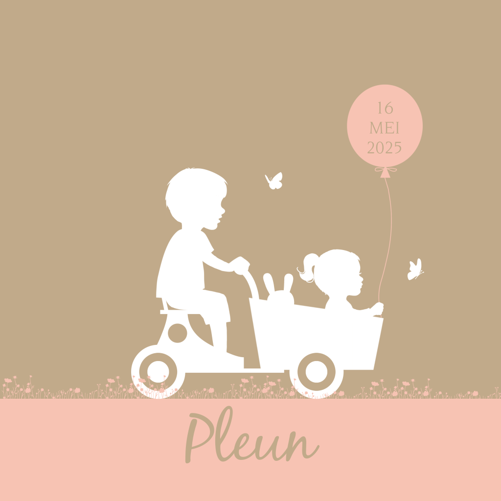 Hip geboortekaartje kraft meisje met broertje in bakfietsje