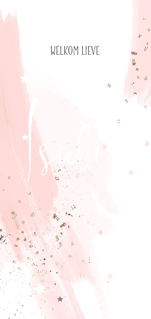 Hip geboortekaartje meisje foliedruk en roze verfstrepen