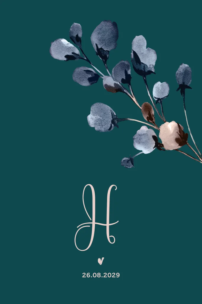 Geboortekaartje hip voor een meisje met initiaal en bloemen.