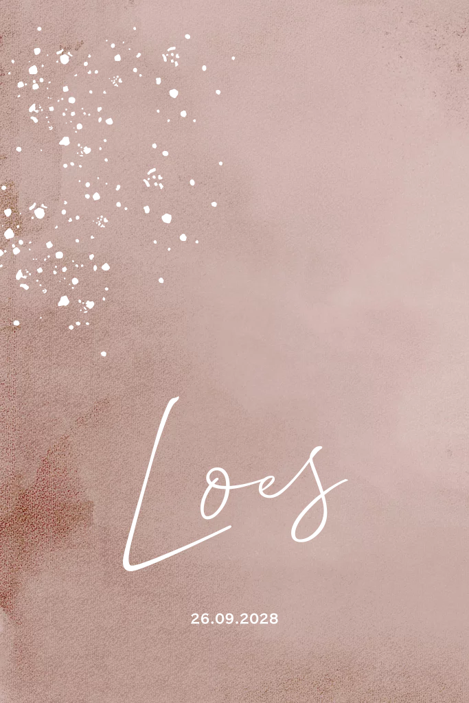 Geboortekaartje hip met foliedruk confetti en roze achtergrond.
