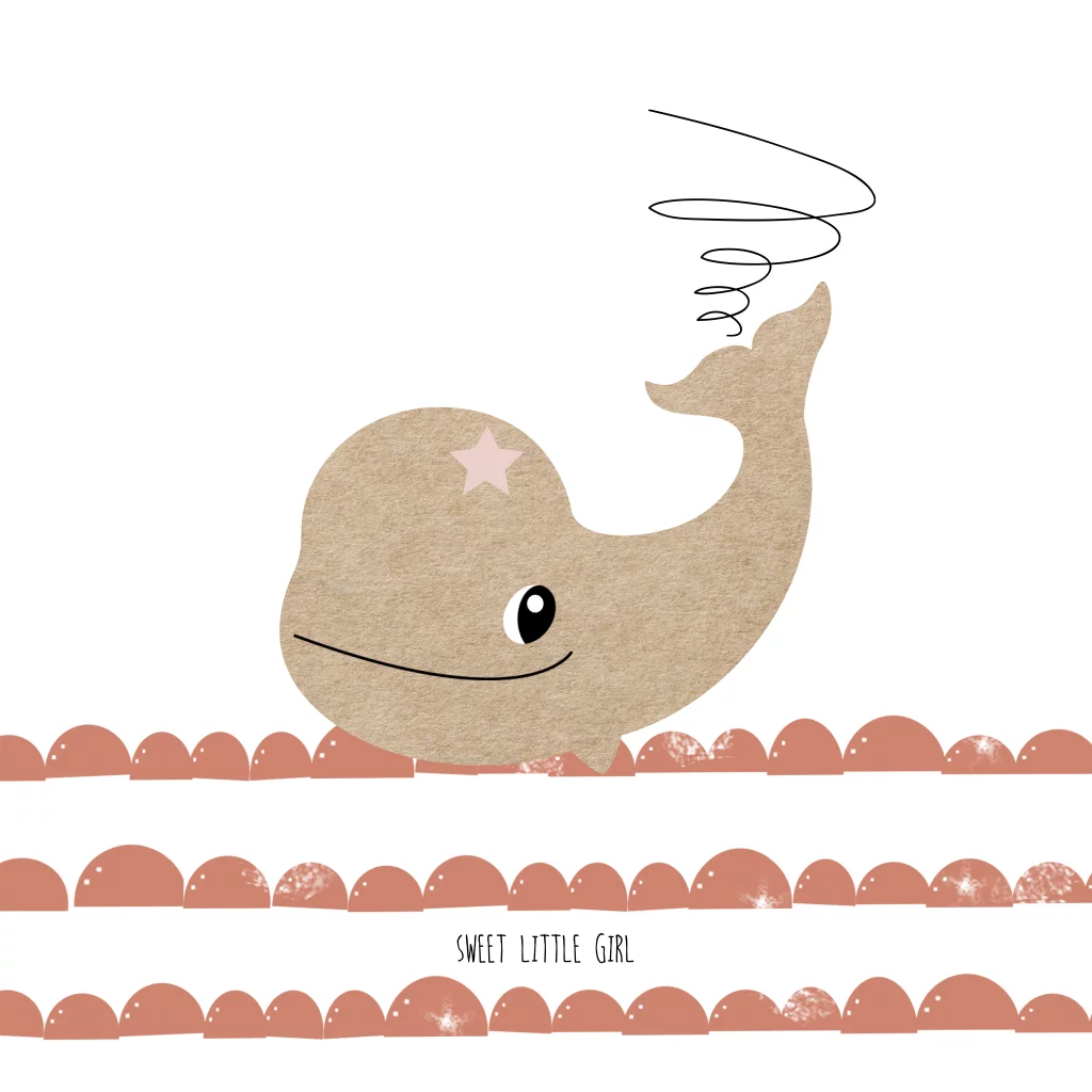 Geboorte kaartje meisje. Hip met een kraft look walvis.