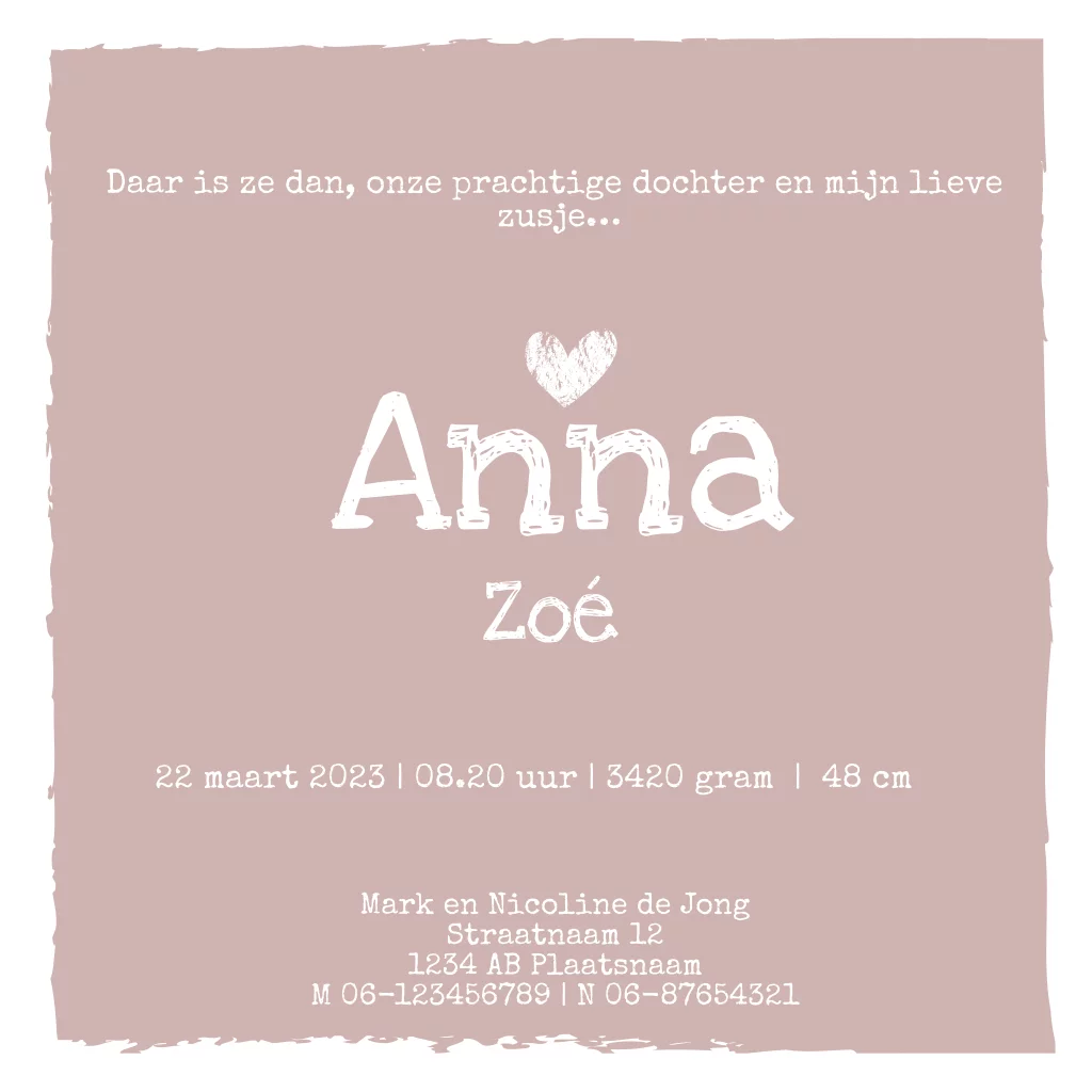 Hip geboortekaartje oud roze. Pas de kleur eenvoudig naar wens aan. (3676)