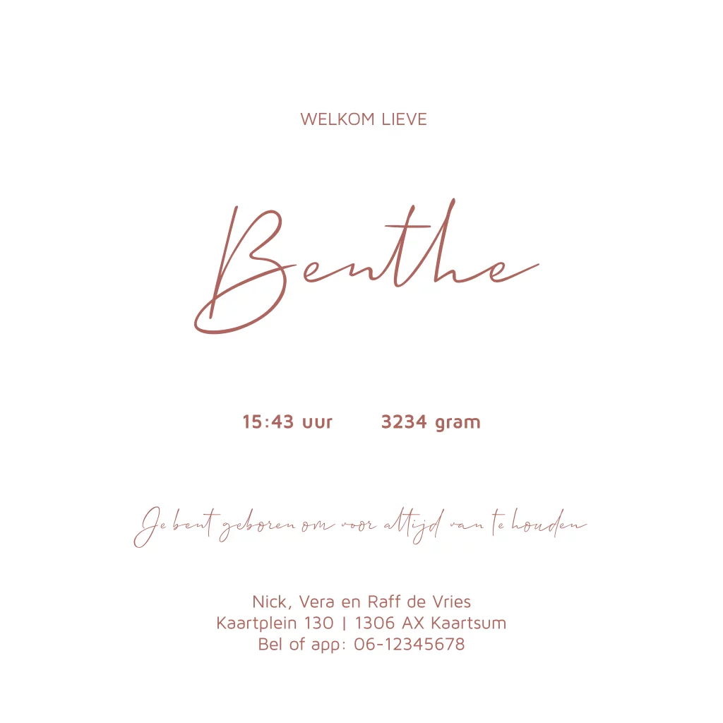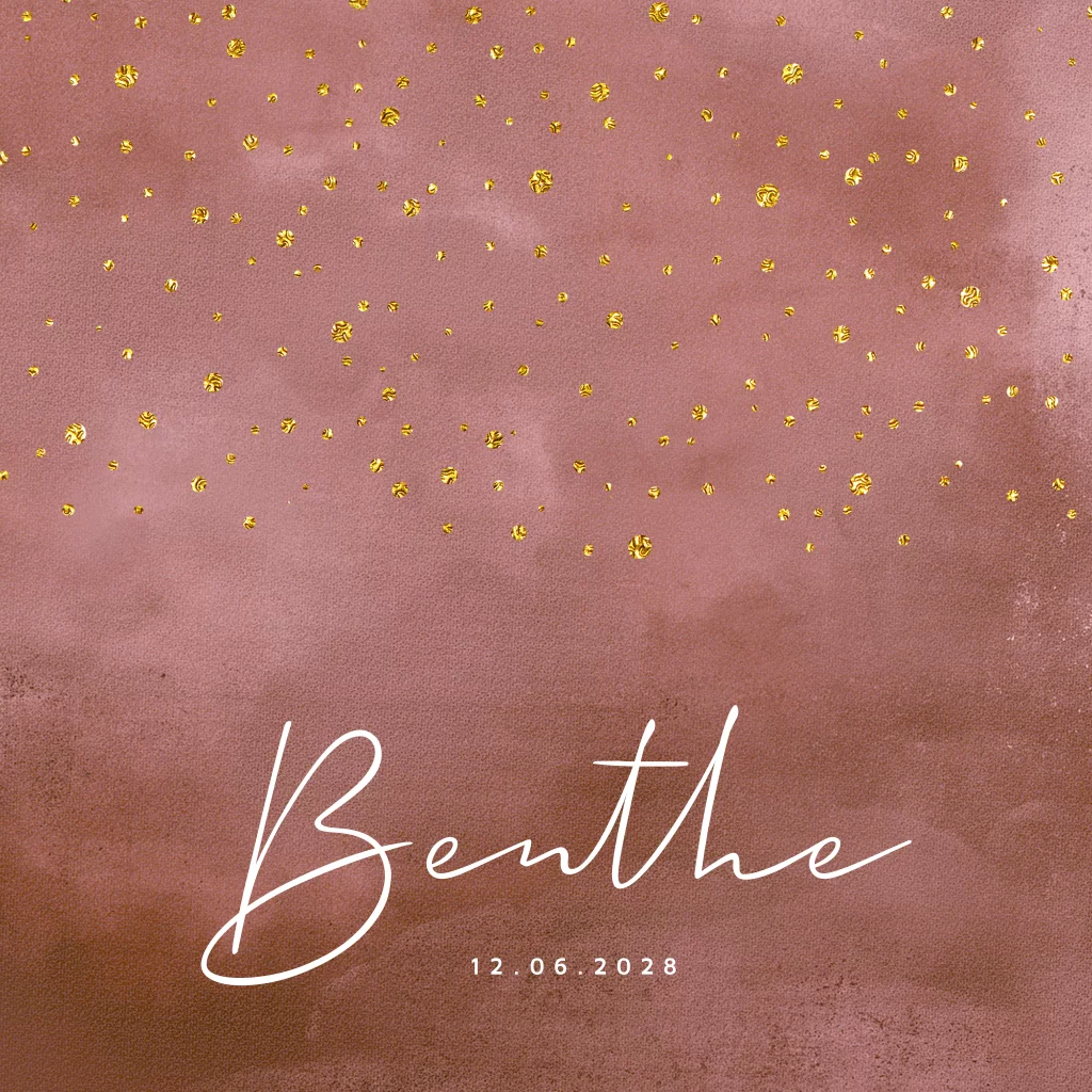Geboortekaartje hip voor een meisje met goudkleurige confetti.