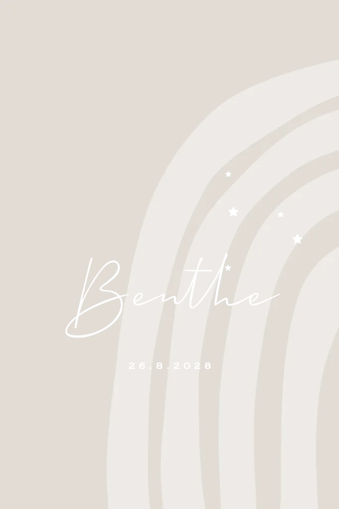 Geboortekaartje hip voor een meisje met regenboog en sterretjes in foliedruk.