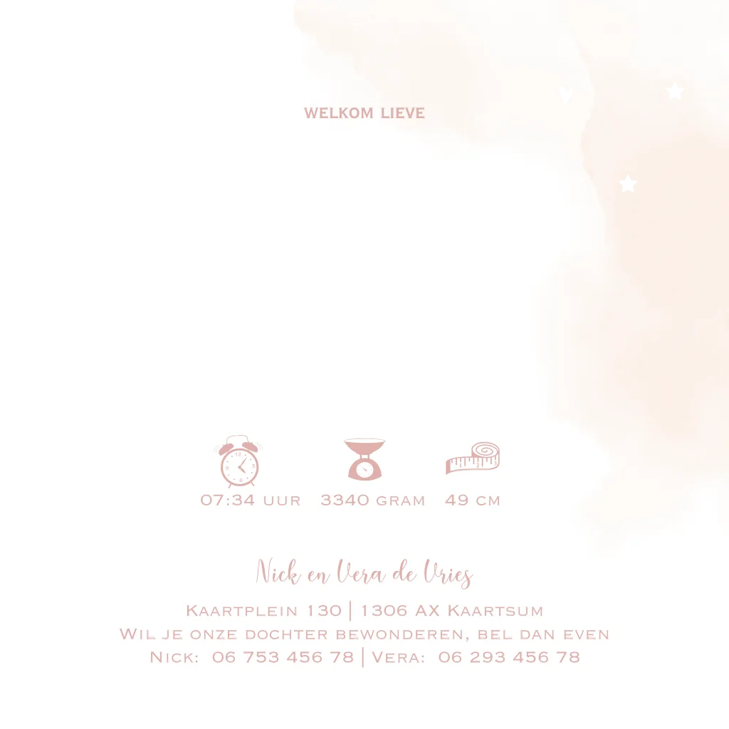 Geboorte kaartje meisje met roze waterverf en foliedruk.