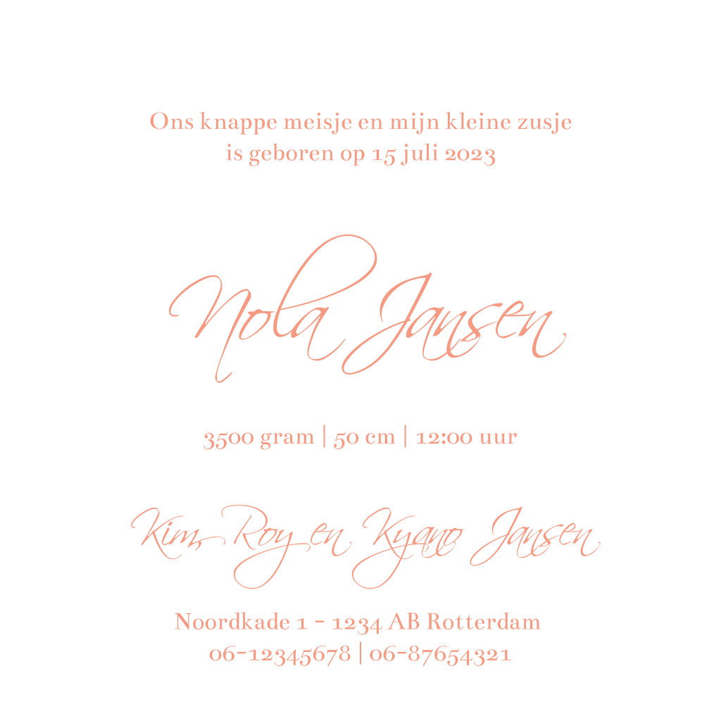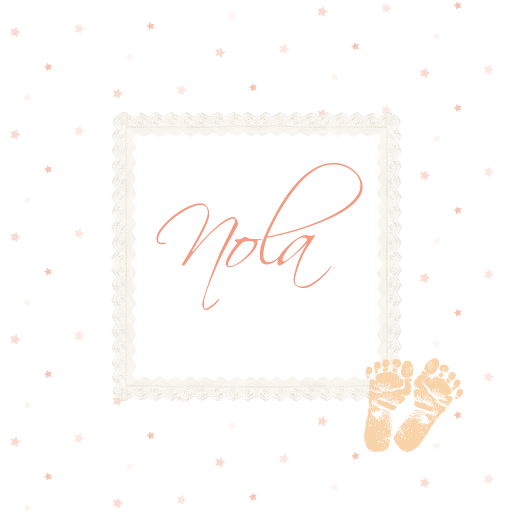 Dit leuke geboortekaartje met een afdruk van schattige babyvoetjes is zo leuk! De sterretjes en het kant maakt hem extra speciaal! De peach envelop past perfect bij dit geboortekaartje.