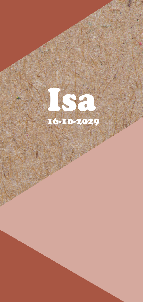 Hip enkel geometrisch geboortekaartje voor een meisje met gekleurde vlakken en een karton uiterlijk. (3309)
