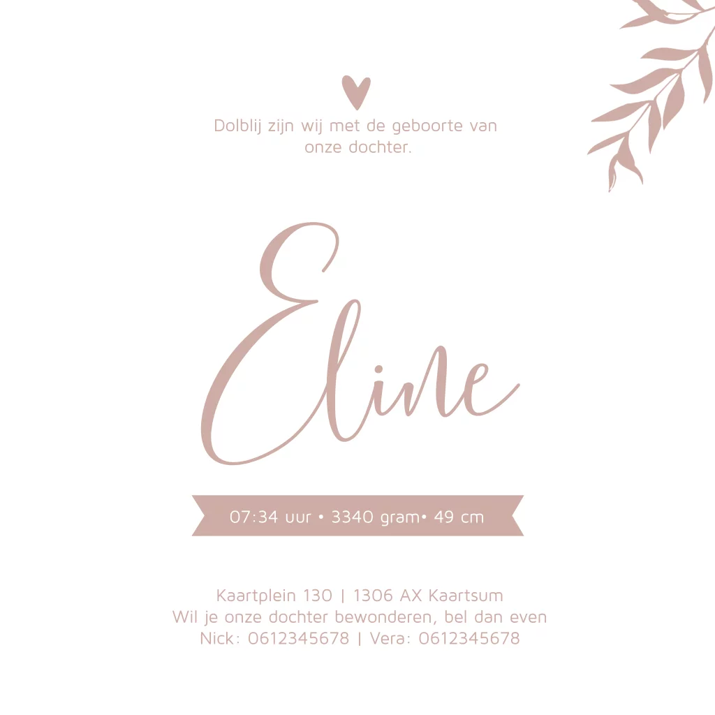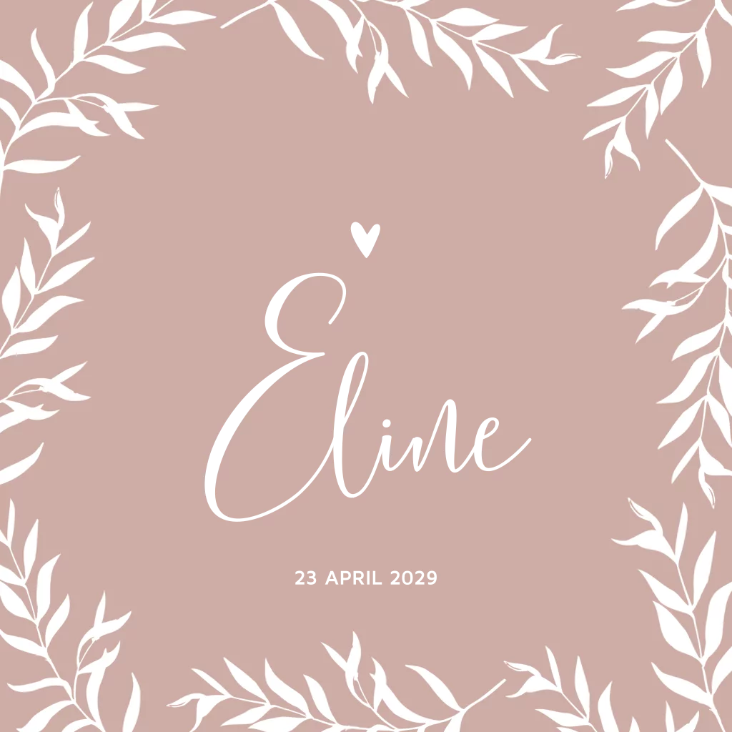 Lente geboortekaartje roze met takjes