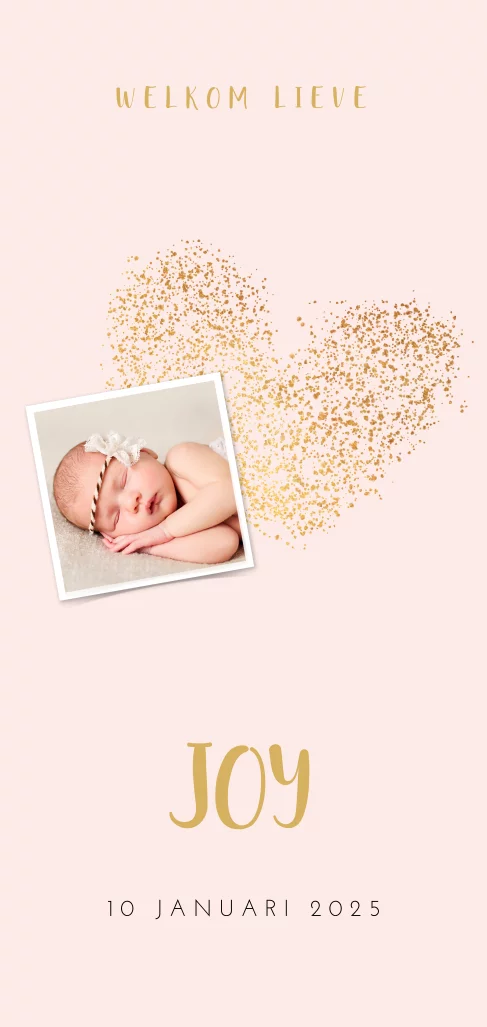 Een super lief geboortekaartje meisje in een staand langwerpig enkel formaat. De mooie roze kleur past perfect op de papiersoort parelmoer en is te combineren met dezelfde envelop. Maak je aankondiging compleet met een mooie sluitzegel. (3273)