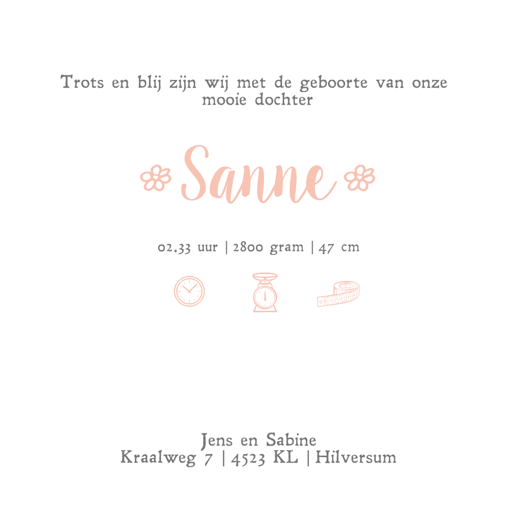 Lief en hip geboortekaartje voor een meisje met schaapje en bloem