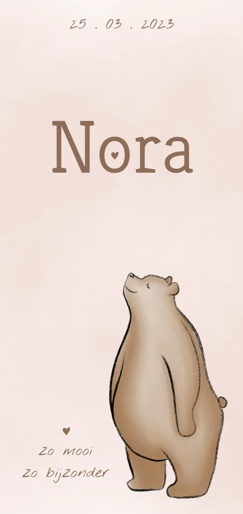 Lief geboortekaartje meisje getekend beertje