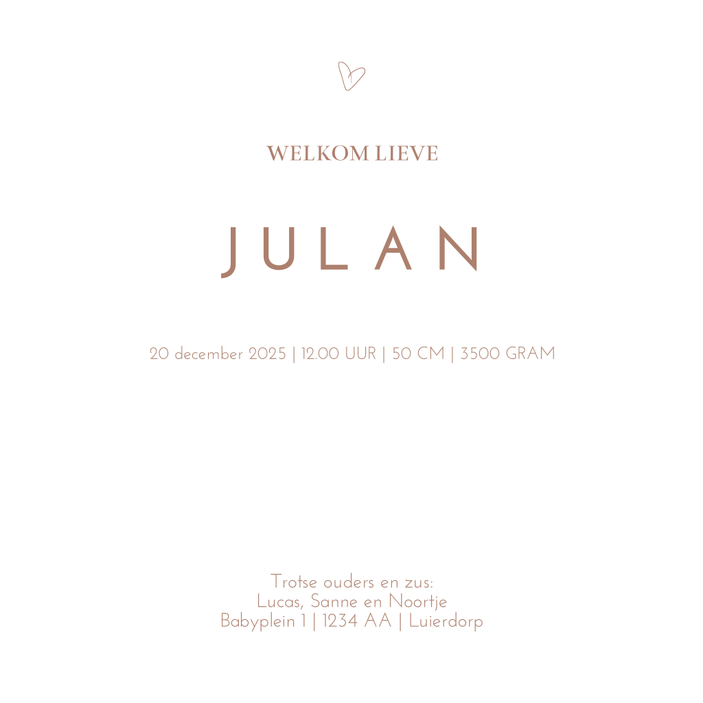 Lief geboortekaartje meisje trendkleuren clean
