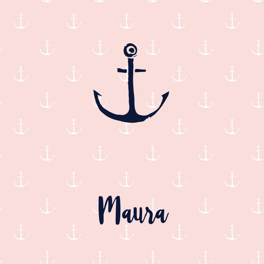 Hip geboortekaartje voor meisjes in nautische stijl met ankers. (257)