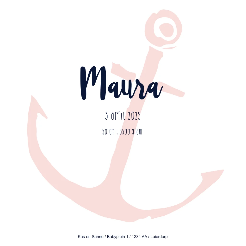 Lief geboortekaartje voor een meisje ankers