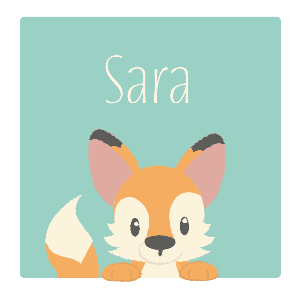 Lief getekend geboortekaartje voor een meisje met een vos. (4587)