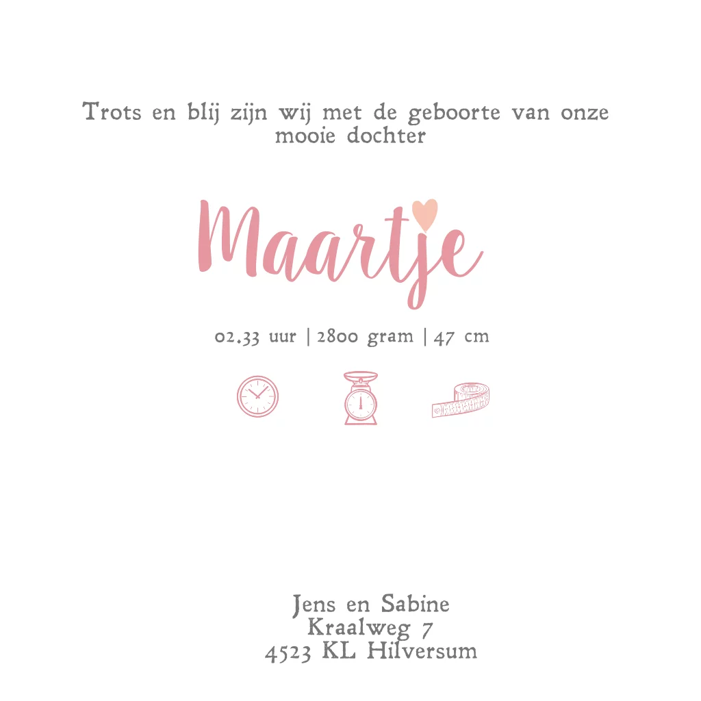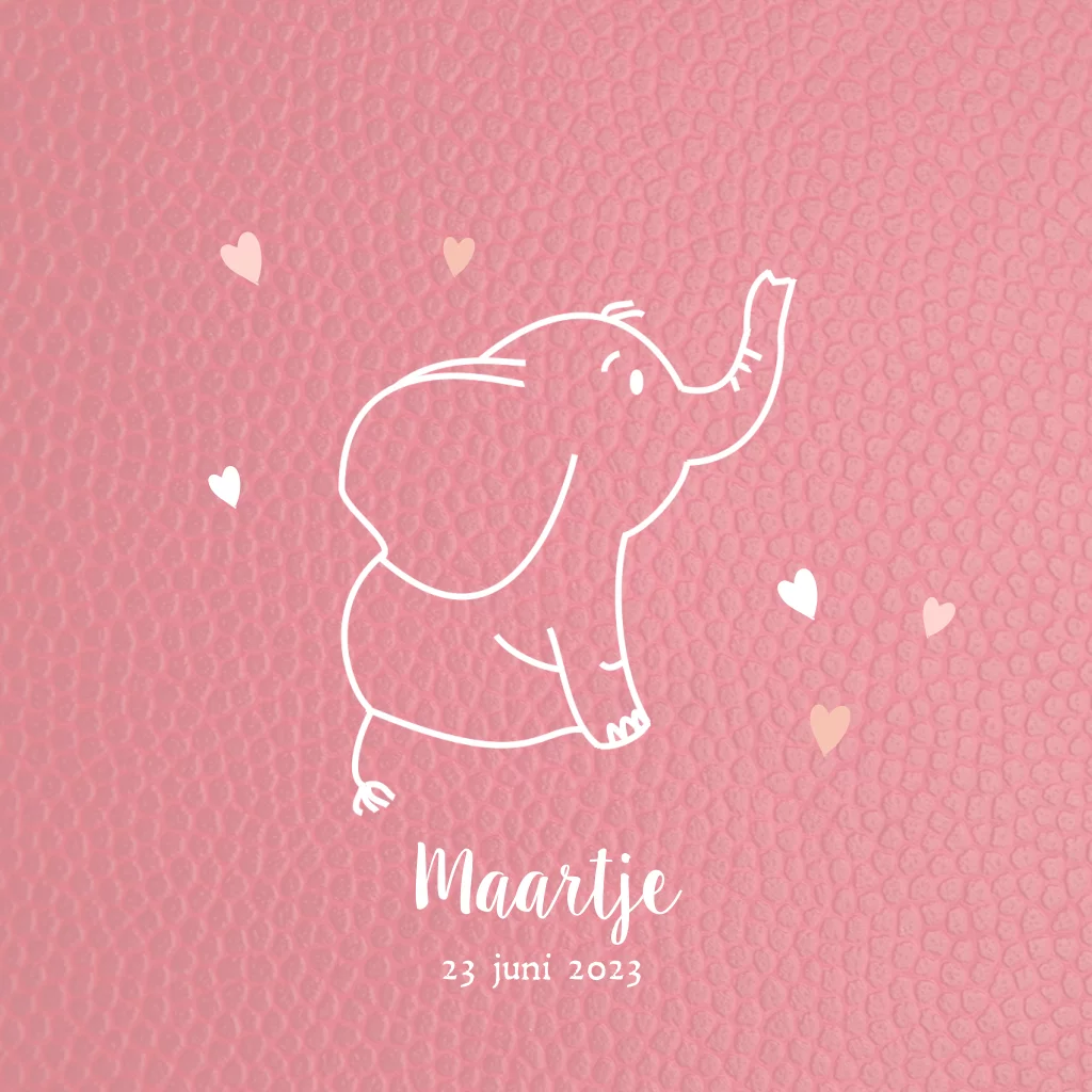 Lief geboortekaartje voor een meisje met olifantje en hartjes