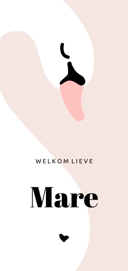 Een lief geboortekaartje voor een meisje met een tekening silhouet van een grote witte zwaan.