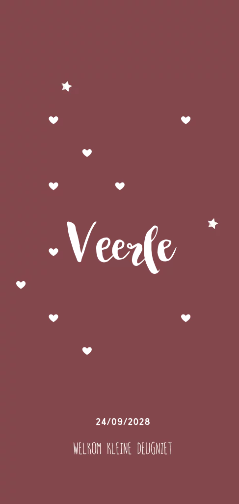 Lief geboorte kaartje meisje in terra kleur en foliedruk hartjes.