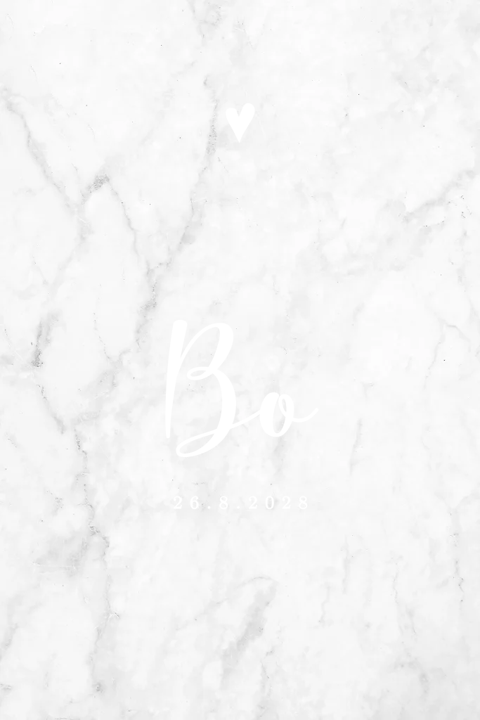 Geboortekaartje meisje met marmer look achtergrond en foliedruk.