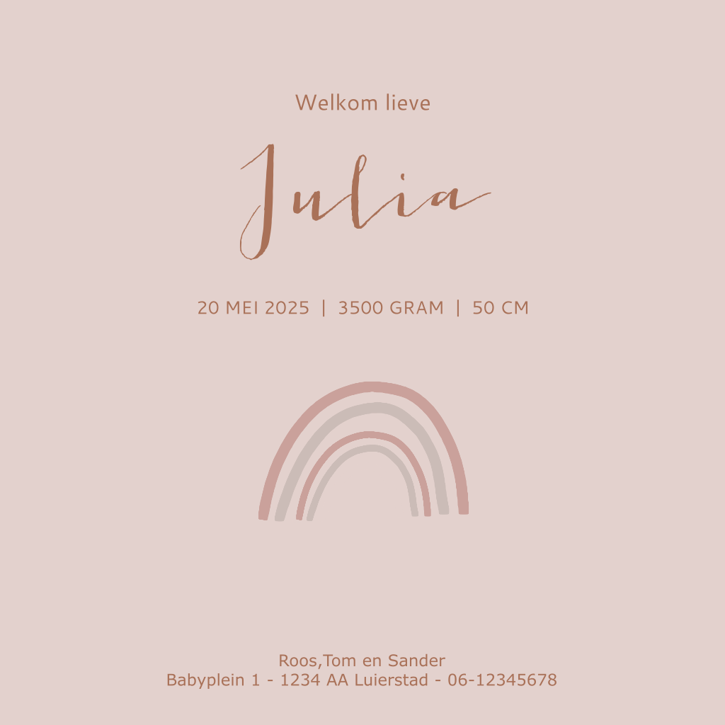 Geboortekaartje voor een meisje met regenboog in trendy kleuren. (3739)