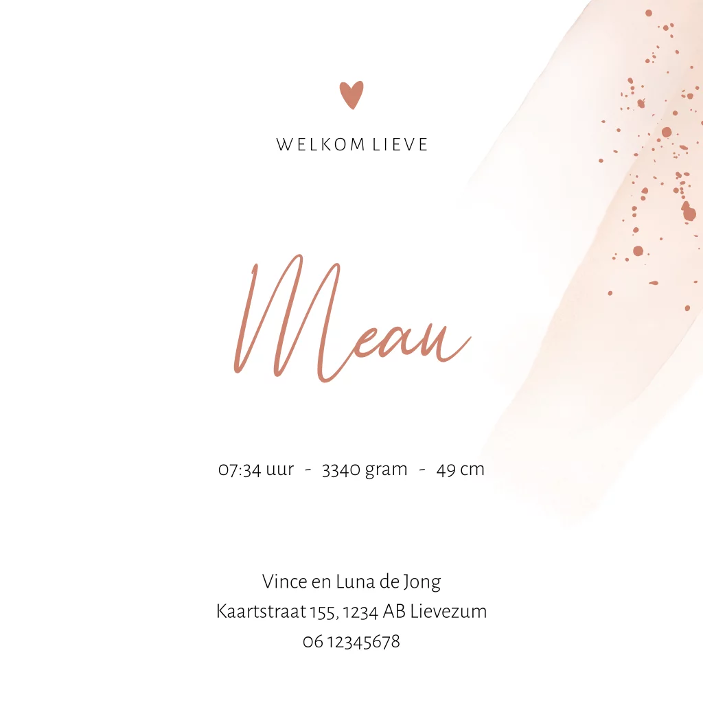 Modern aquarel geboortekaartje voor een meisje met roze streep. (4501)