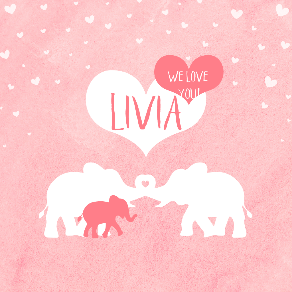 Dieren geboortekaartjes meisje - Olifanten onder hartjes