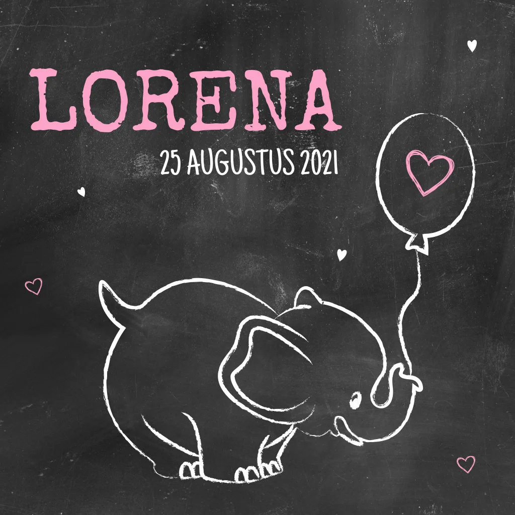 Vind je dit geboortekaartje voor een meisje ook niet leuk? De illustratie van de olifant op een achtergrond van krijtbord is lekker origineel. Met een vrolijk lettertype op de hippe enkele geboortekaart.