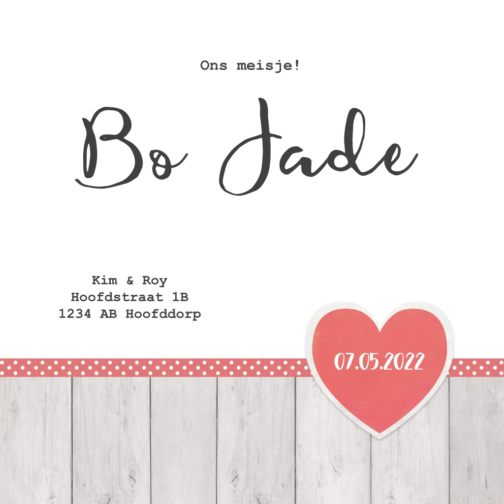 Vrolijk geboortekaartje met rood hart