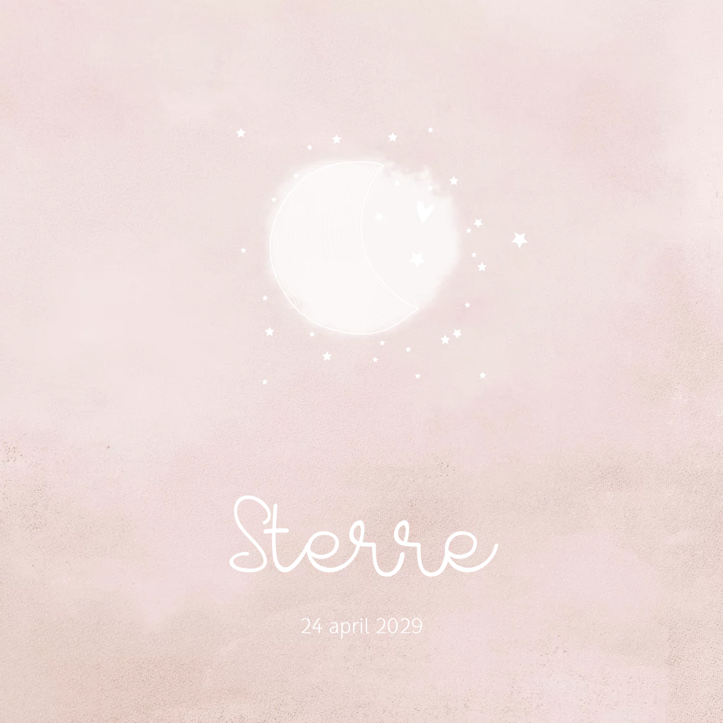 Roze hip geboortekaartje meisje met foliedruk maan