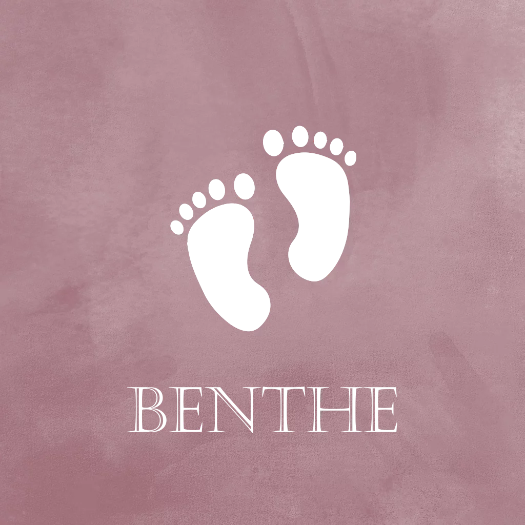 Lief geboortekaartje voor een meisje met baby voetjes in foliedruk. (4416)