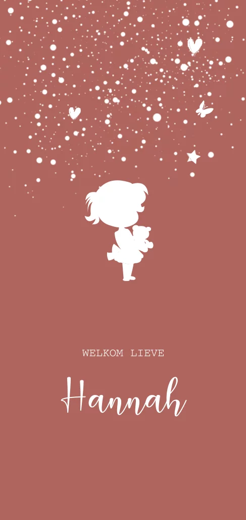 Lief geboorte kaartje met een silhouette van een meisje een een beertje.