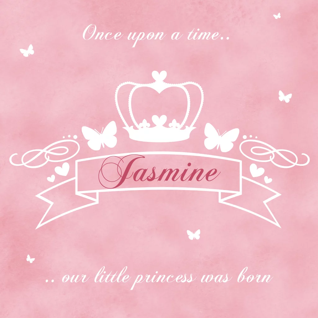 Sprookjesachtig geboortekaartje - Kroon en vlinders