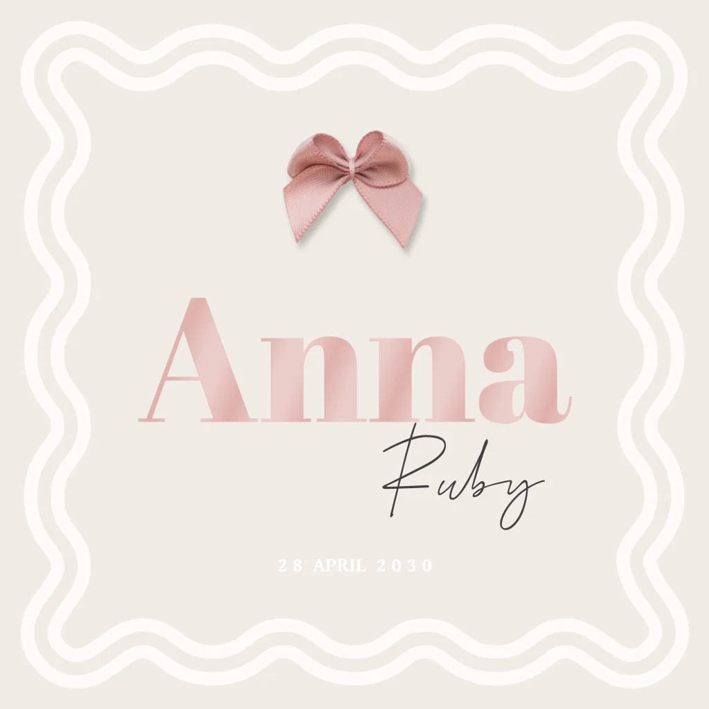Stijlvol beige geboortekaartje met écht oude roze strikje en hoogglans folie. Maak het geheel helemaal af met een beige metallic envelop en bijpassende sluitstickers.