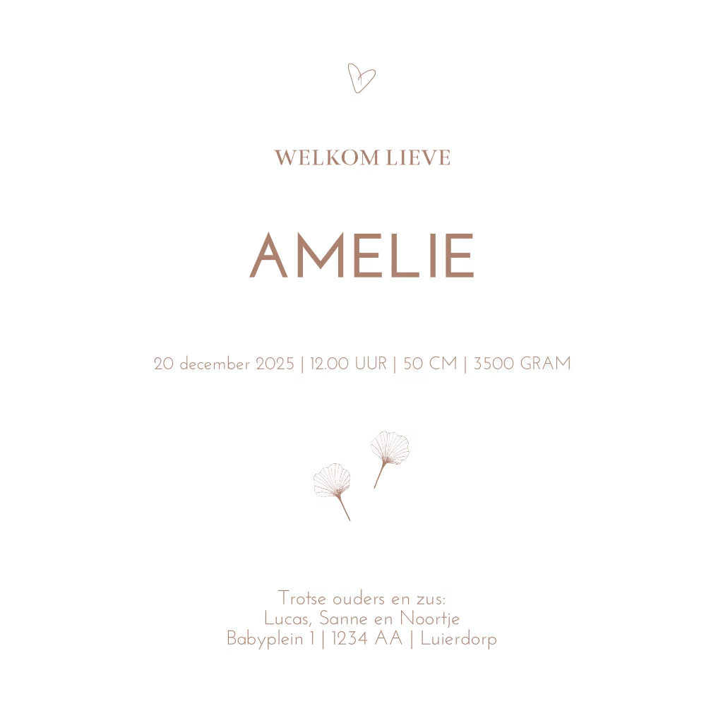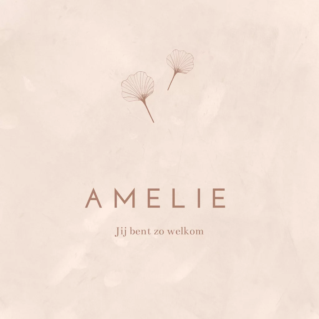 Trendy geboortekaartje meisje met ginkgo bladeren